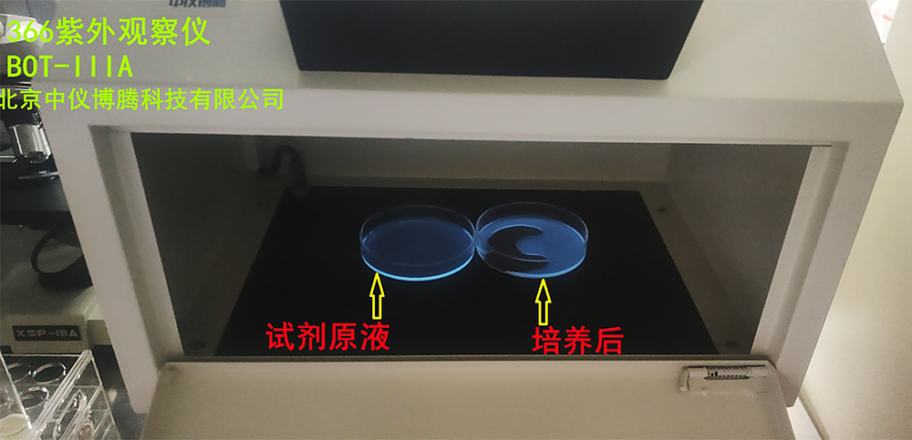大腸埃希氏菌測(cè)定熒光觀察使用方法:將臺(tái)式紫外光燈置于暗處,插上電源,將經(jīng)過(guò)24小時(shí)培養(yǎng)后的EC-MUG管在燈下照射,如有藍(lán)色熒光產(chǎn)生則為大腸埃希氏菌陽(yáng)性管;